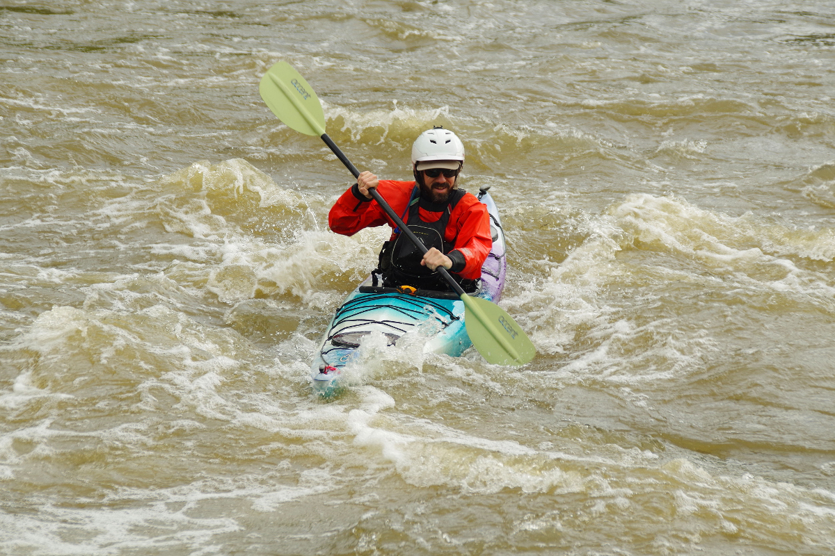 Unlike places further downstream, like the Gunnison Rapid near Poole road or the site of the old Milburnie Dam, that are directly affected by rainfall, the Falls rapids are dam controlled and so you can only go out there when they are releasing from the Dam. I’ve found that around a 1300-1800CFS release is probably the sweet spot for me and while I’ve been out there at much higher rates, once it gets above 3K practicing ferrying is about all I can do. However, at the lower rates, there are several nice surf spots and plenty of places to play around.